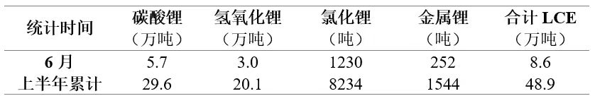 ? ? ? 上半年我國鋰鹽累計產量較去年同期增加約三分之一。上半年,我國碳酸鋰累計產量為29.6萬噸,氫氧化鋰累計產量為20.1噸,氯化鋰累計產量為8234噸,金屬鋰累計產量為1544噸,上半年我國鋰鹽產量累計折合碳酸鋰當量(LCE)48.9萬噸,同比2023年同期增加34.3%。